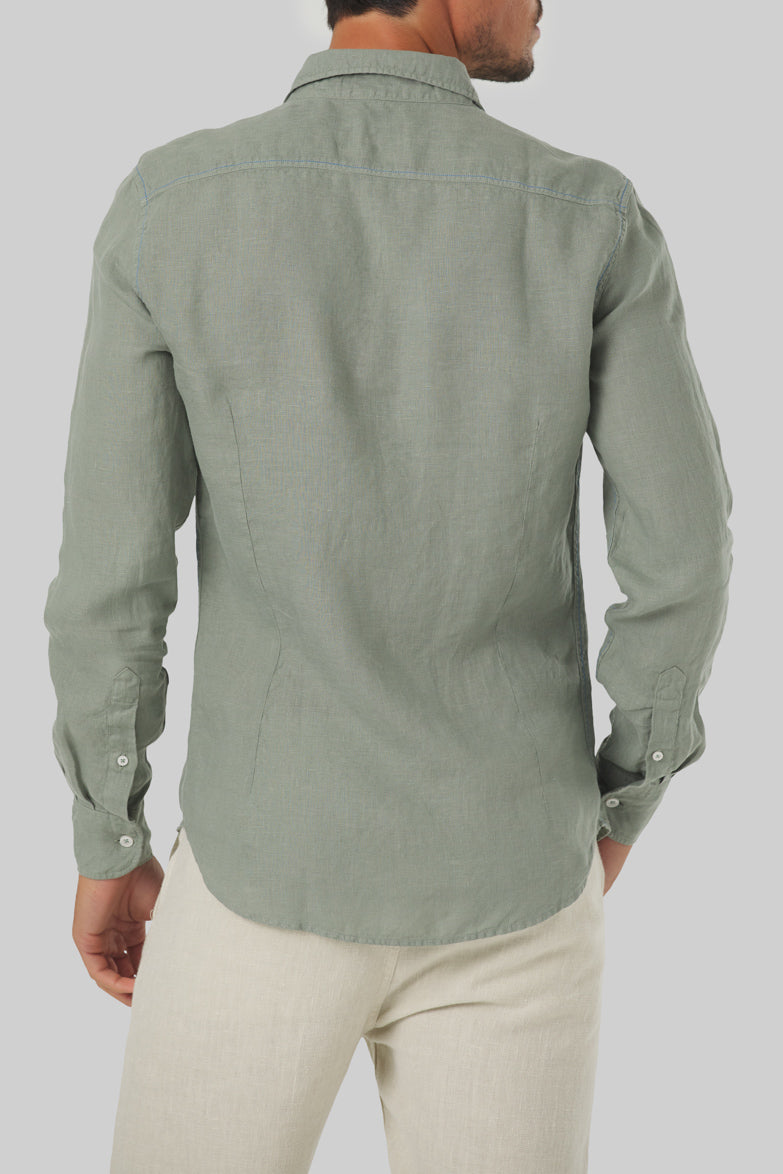 A fitted button-down linen shirt, complete with a classic collar. Slim Fit: A tailored cut that contours the torso and arms for a sleek, defined look, without sacrificing comfort.