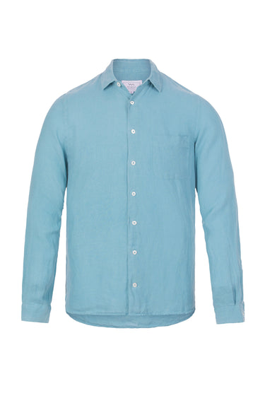 A linen button-down shirt with minimal detailing to feel comfortable in any event.