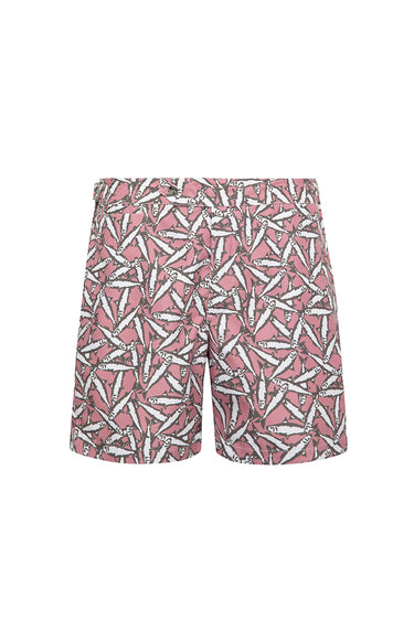 A modern redesign of the classic swim shorts silhouette in a unique print.