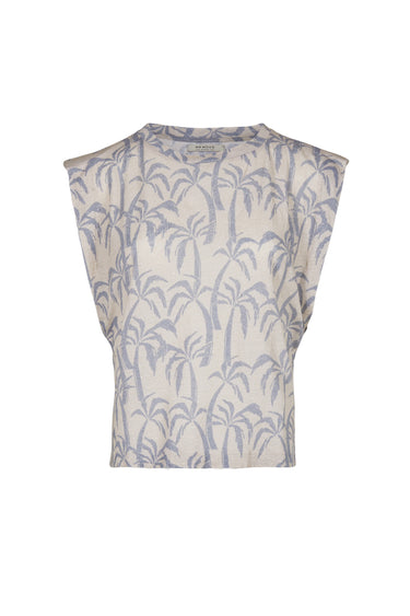 An open sides linen flowy t-shirt in an avant-garde pattern.