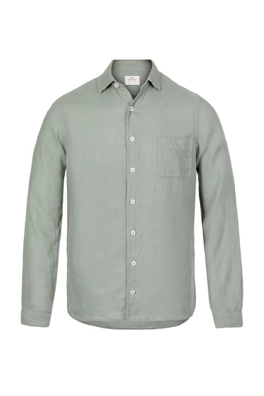 A linen button-down shirt with minimal detailing to feel comfortable in any event.