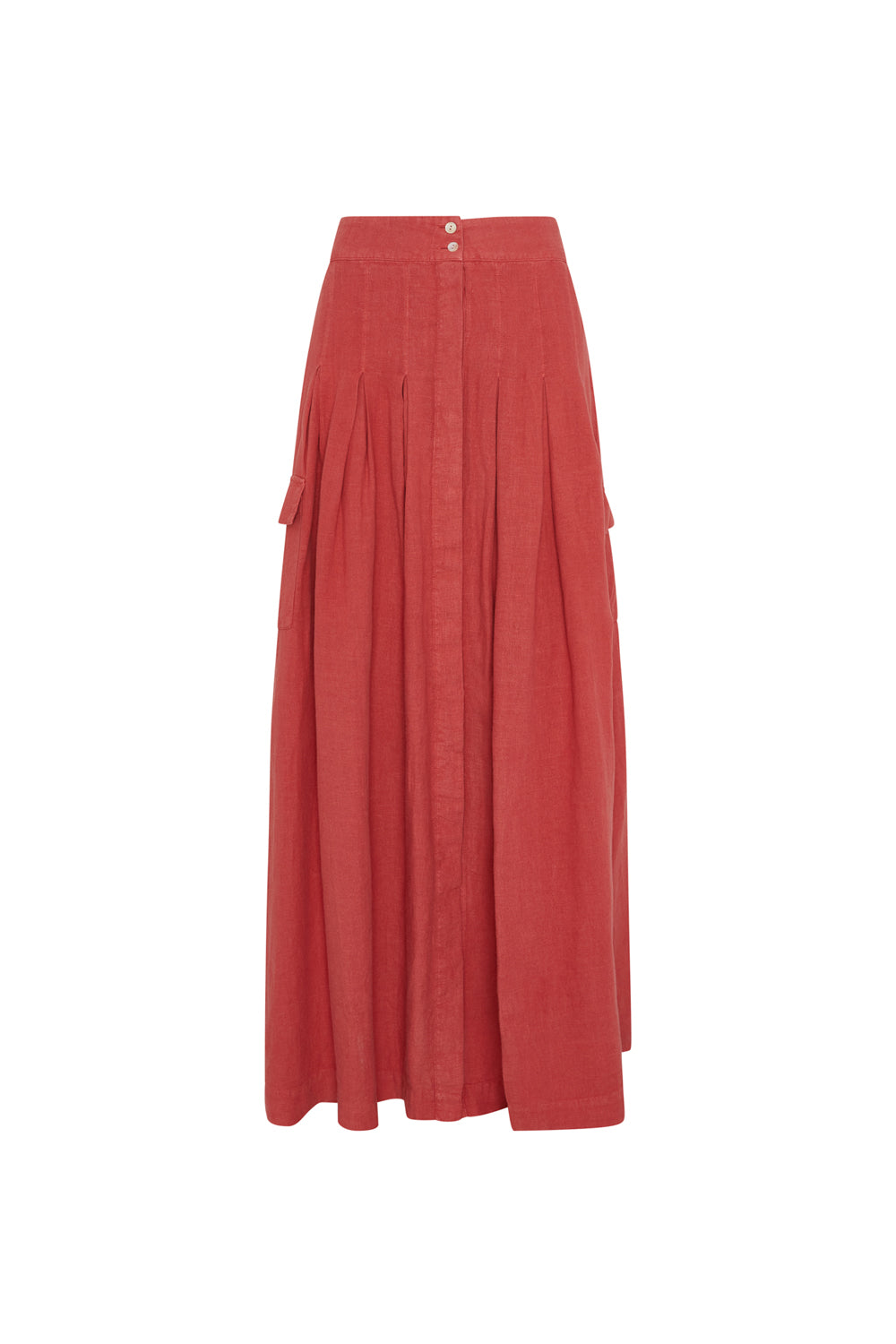 Stay stylish and comfortable with our long linen split skirt, designed for movement and spontaneity. Made from 100% linen, it features a button-down front, side pockets, and an elastic back waistband for a perfect fit.