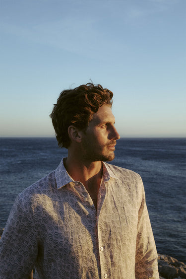 A Special Edition linen button-down shirt with a relaxed profile and limited print.