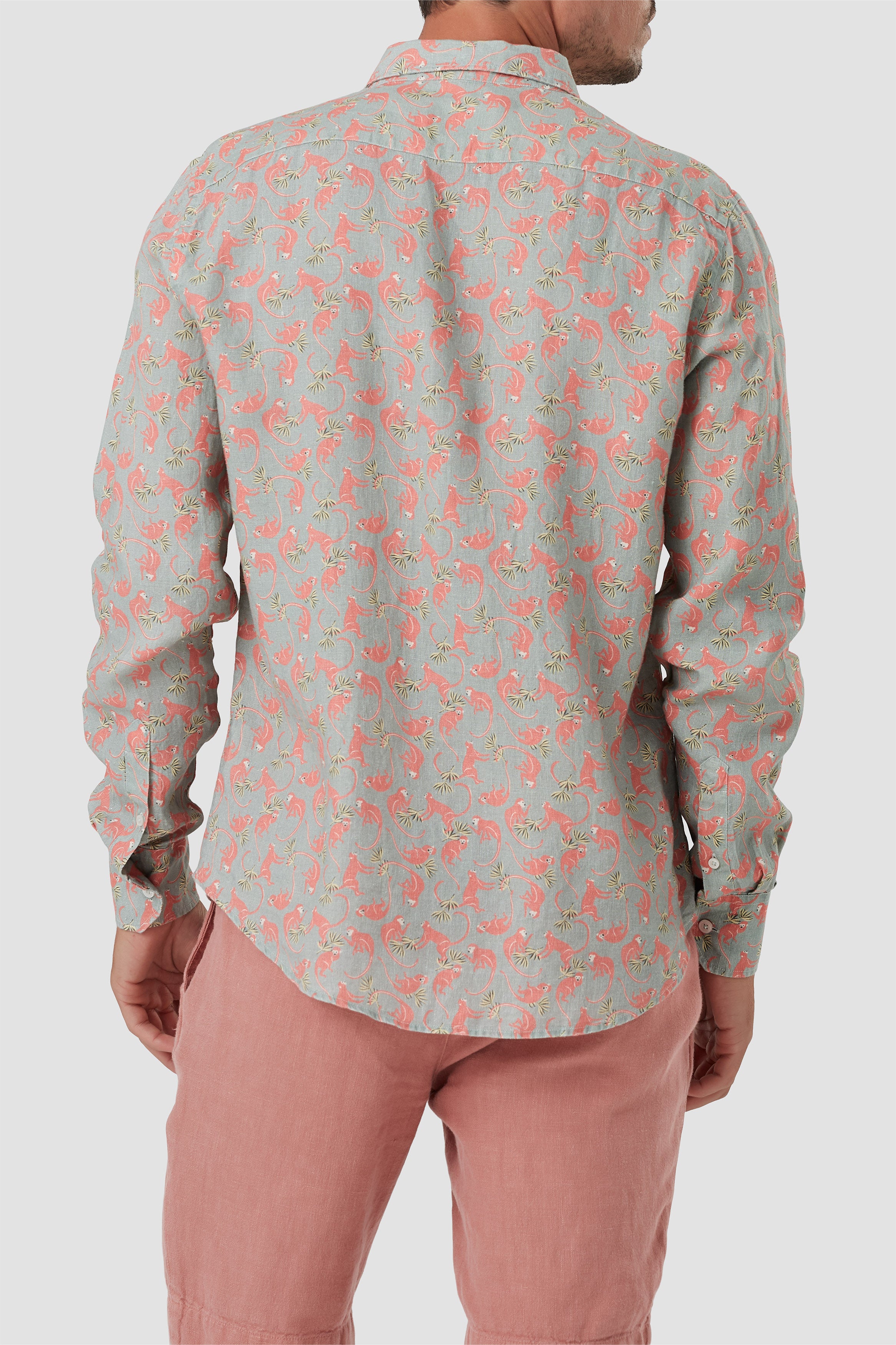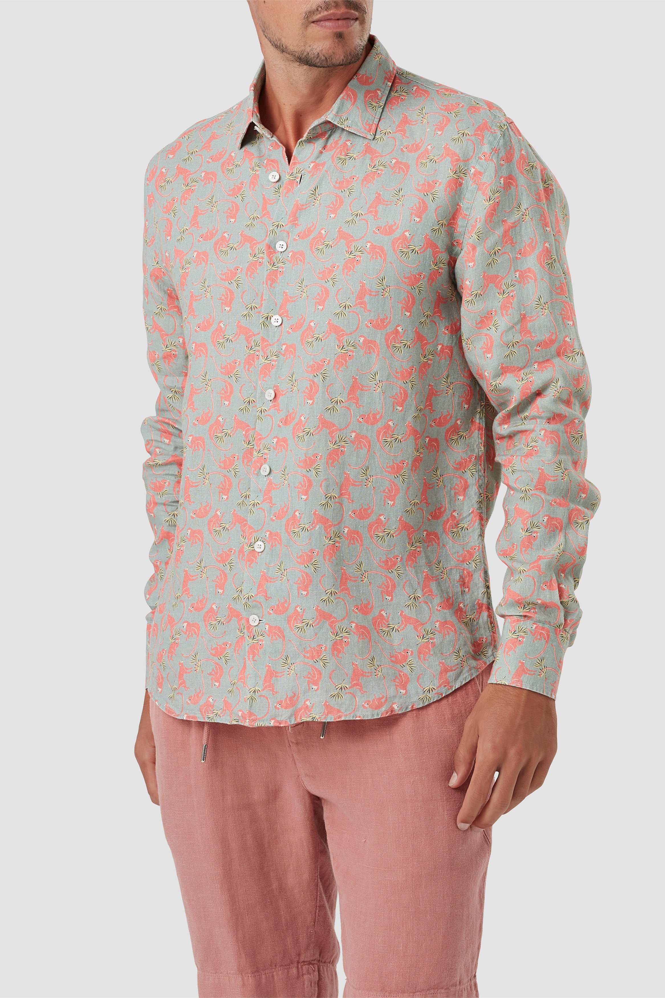 A Special Edition linen button-down shirt with a relaxed profile and limited print.
